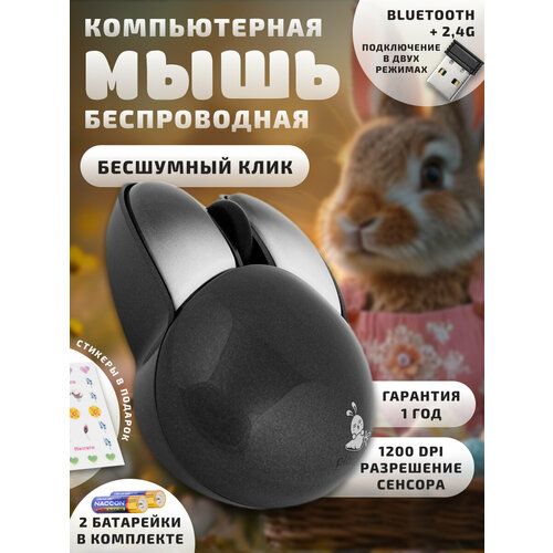 Найти - Компьютерная мышь беспроводная Кролик M6DM 2,4G Bluetooth USB серо-черная
