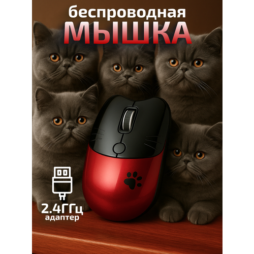 Найти - Компьютерная мышь беспроводная Котик с лапкой USB + Bluetooth черно красная