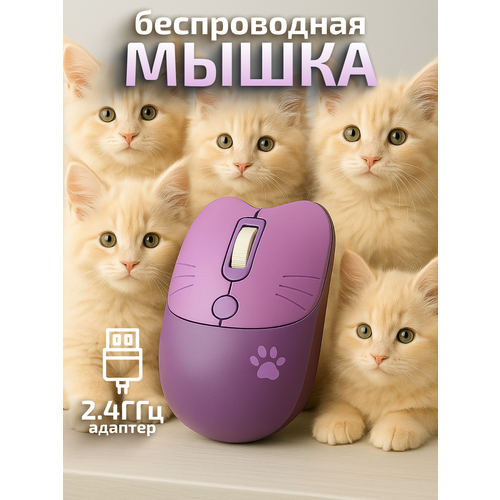 Найти - Компьютерная мышь беспроводная Котик с лапкой M3 2,4G USB фиолетовая