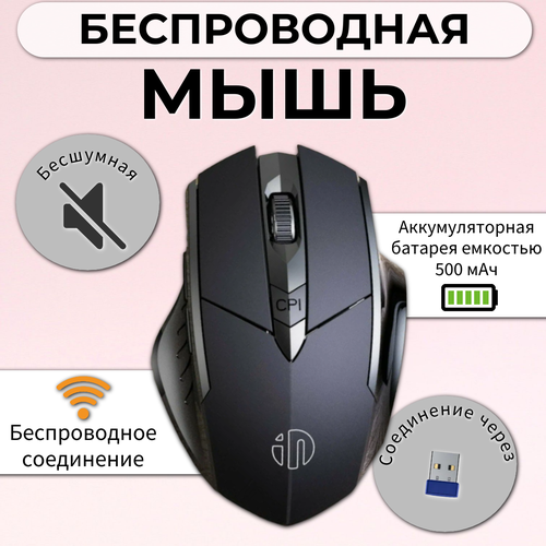Найти - Беспроводная мышь Inphic F1S аккумуляторная, с бесшумными кнопками, черный