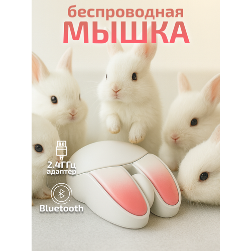 Найти - Компьютерная мышь беспроводная Кролик M6DM 2,4G Bluetooth USB бело-розовая милая