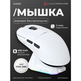 Найти - Игровая беспроводная мышь AJAZZ AJ159P, белая, док-станция, PAW3395, 26000dpi