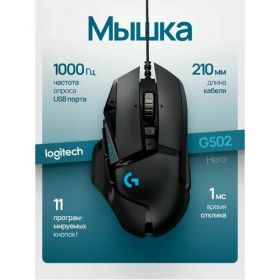 Представляем вам проводную игровую мышь Logitech G502 Hero — идеальный выбор для геймеров и любителей компьютерных игр• Высокая точность: Оснащенная передовым датчиком HERO, игровая мышка Logitech обеспечивает невероятную точность и скорость отслеживания. Вы сможете легко настраивать чувствительность от 200 до 25,600 DPI, что делает её идеальной для любых игровых стилей.• Удобный дизайн: Мышка для компьютера имеет эргономичную форму, которая обеспечивает комфорт даже во время длительных игровых сессий. Продуманные элементы управления и кнопки, расположенные под рукой, позволяют быстро реагировать на игровые события.• Проводная связь: Проводная мышь обеспечивает стабильное соединение без задержек, что особенно важно в динамичных играх. Забудьте о проблемах с зарядкой — просто подключите мышку проводную к USB-порту вашего компьютера и наслаждайтесь игрой Logitech мышь предлагает возможность программирования до 11 кнопок, что позволяет настроить управление под свои нужды. Создавайте макросы и используйте их в своих любимых играх для получения преимущества над соперниками.• Стильный внешний вид: С уникальным дизайном и RGB-подсветкой, мышка компьютерная не только функциональна, но и станет отличным дополнением к вашему игровому пространству.• Совместимость: Мышка проводная компьютерная совместима с большинством операционных систем, включая Windows и macOS, что делает её универсальным решением для всех пользователей. Не упустите шанс улучшить свой игровой опыт с мышкой Logitech G502 Hero