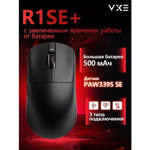 Найти - Беспроводная мышь VXE R1 SE+, оптический сенсор PAW3395, Длинная продолжительность , Чёрный