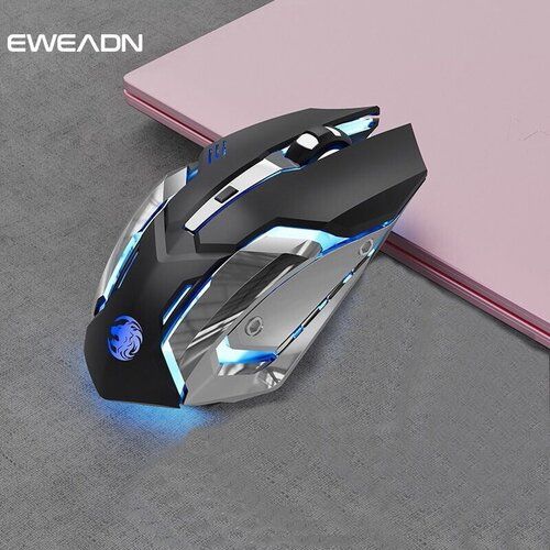 Найти - Механическая беспроводная мышь EWEADN, бесшумная, игровая, 2 в 1 Bluetooth 5.1 USB-штекер и Bluetooth 2.4 с подсветкой RGB, черный/серебро-2
