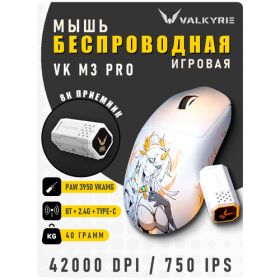Найти - Мышка беспроводная для компьютера игровая Valkyrie M3 PRO / PAW 3950, 42000 DPI, 40гр / C 8к приемником. Белая