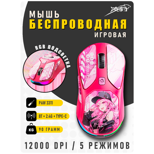 Найти - Мышка беспроводная игровая для компьютера M7 ELINIA / Сенсор PAW3311 / Розовая