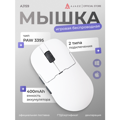 Найти - Игровая беспроводная мышь AJAZZ AJ159 / 2 режима подключения / Белая