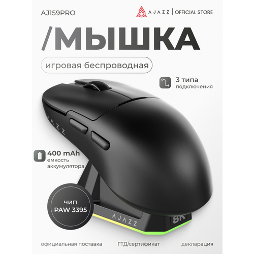Найти - Игровая беспроводная мышь AJAZZ AJ159PRO, черная, док-станция, PAW3395, 8000 Гц