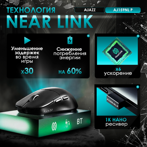 Главным отличием модели AJ159 NL P является возможность подключить игровую мышь AJAZZ к устройству с помощью инновационной технологии NearLink . NearLink — это усовершенствованный стандарт беспроводной связи нового поколения. В отличие от Bluetooth, технология Star Flash позволяет перекидывать файлы в 6 раз быстрее. При переходе на NearLink, ваш игровой процесс будет задерживаться в 30 раз реже, а сниженное энергопотребление позволит открыть для себя еще больше игровых вселенных.