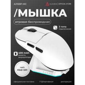 Найти - Игровая беспроводная мышь AJAZZ AJ159P MC, белая, док-станция, PAW3311, 3 режима подключения, 400 мАч