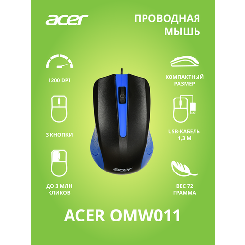 Мышь компьютерная Acer OMW011 черно-синяя (ZL.MCEEE.002) Внешний вид и/или характеристики товара могут быть изменены производителем в соответствии с производственным процессом.