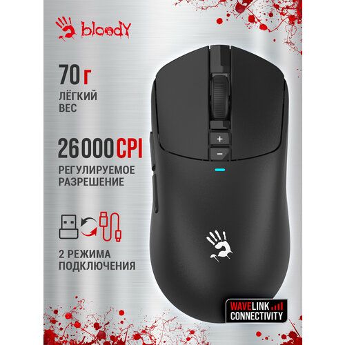 2027328 A4TECH / Мышь A4TECH Bloody R72 Pro Duo, игровая, оптическая, беспроводная, USB, черный