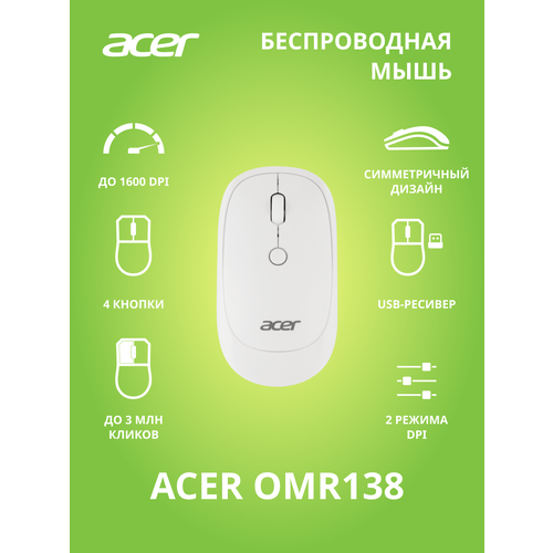 Мышь беспроводная Acer OMR138 белый (ZL. MCEEE.01L) 101881224064