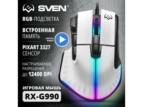 Мышь проводная компьютерная оптическая с подсветкой / Мышка для компьютера ПК, ноутбука игровая SVEN RX-G990 / 200-12400 DPI / ПО 31616440