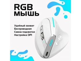 Вертикальная мышь беспроводная, ZELOTES F36, перезаряжаемая, с подсветкой RGB, для компьютера, белая 103531058353