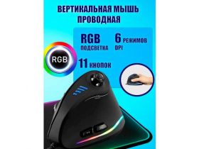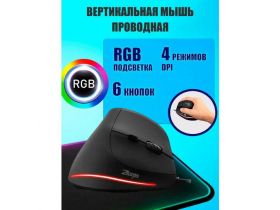 Мышь проводная вертикальная ZELOTES T-20, черный, 3200DPI, подсветка 103632617925