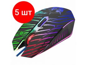 Комплект 5 шт, Мышь проводная игровая DEFENDER Dark Agent GM-590L,12600 DPI, USB,6 кн, оптич,+ коври, 52590 102531170041