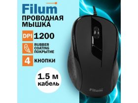 Мышь проводная Filum FL-M30-BK оптическая USB 4 кнопки, чёрный 103647324048