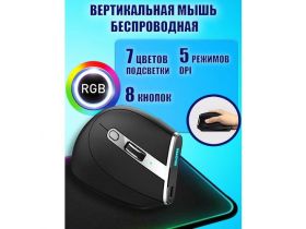 Вертикальная мышь беспроводная, ZELOTES F36, перезаряжаемая, с подсветкой RGB, для компьютера, черная 103647323216