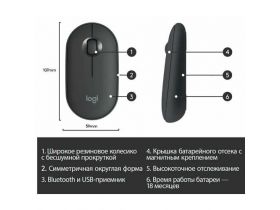 Мышь Logitech Pebble M350, беспроводная, серый цвет 103772824603