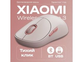 Мышь беспроводная Xiaomi Wireless Mouse 3 Pink GL, разрешение 1200 dpi, 4 кнопки 4306042293