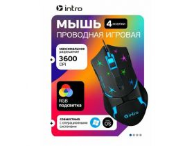 Мышь игровая компьютерная проводная с подсветкой Intro MG555, 6 кнопок, 800-3600dpi, черная 102949472858