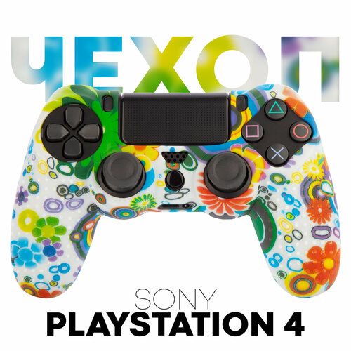 Найти - Защитный силиконовый чехол для геймпада Sony PlayStation 4 DualShock с рисунком и массажными пупырками (матовая накладка с принтом для контроллера Сони Плэйстэйшн 4 Дуалшок), бренд картофан, цветные ромашки