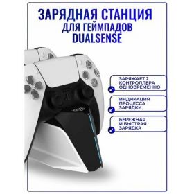 Станция выполнена из качественного пластика в белом и черном цветах, что делает ее стильной и удобной в использовании. Она легко подключается к источнику питания и совместима с контроллерами PS5. Контроллеры можно заряжать, просто вставив их в зарядные порты на станции. Красный индикатор показывает, что контроллер заряжается, а синий - что он полностью заряжен. После того, как контроллер снят со станции, индикатор зарядки гаснет.