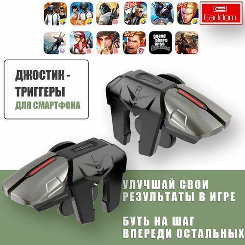 Триггеры с четырьмя кнопками для мобильного гейминга (PUBG, Fortnite, Standoff и др.) В настоящее время смартфоны стали не только средством связи но и настоящими игровыми устройствами, за счет мощных системных данных и четких экранов. Игры есть на любой вкус и играть в них одно удовольствие: PUBG, Fortnite, Standoff, Call Of Dudy и др. Все игры на смартфонах рассчитаны на управление пальцами и для настоящих геймеров приходит на помощь наш Джойстик- триггер для телефона Earldom ET-F08 или как его еще называют- игровые кнопки. Изготовлен из качественного и прочного материала. Простая и надежная конструкция, отсутствие электроники. Джостик- триггер позволит вам улучшить свои результаты в игре, быть на шаг впереди. Удобство игры увеличивается в разы. Вы всегда будете на шаг быстрее своего конкурента и сможете удобно прицелится и выстрелить. Устройство предназначено для любых сенсорных смартфонов и планшетов. Внимание каждый триггер с возможность двойного нажатия- по две кнопки на каждой стороне; надежная фиксация на устройстве; качественное исполнение; работает без подключения к батареи и не требует подключения через Bluetooth; отсутствие электроники; хорошо передают касания; делает игровой процесс более приятным и результативным; внимание Если у вас объемная модель чехла, то нужно будет его снять на время использования триггеров.