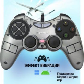 Геймпад Defender Zoom - это невероятный игровой манипулятор, который подойдет для игр любого типа на персональных компьютерах. Геймпад оснащен большим количеством кнопок, что обеспечивает игру на высшем уровне. Данная модель геймпада является проводной, но это не мешает игре, поскольку длина провода позволяет свободно двигаться во время игры. Данный джойстик-геймпад предназначен для эксплуатации с IBM PC-совместимыми персональными компьютерами, работающими под управлением операционных систем семейства Microsoft Windows. Питание геймпада происходит с помощью порта USB. До начала работы с геймпадом необходимо ознакомиться с системными требованиями. Наслаждайтесь захватывающей игрой вместе с нашими геймпадами.