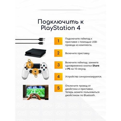 Белый беспроводной джойстик Original Drop для PS4 с полным набором функций DualShock 4 (v2) и подключением через Bluetooth.