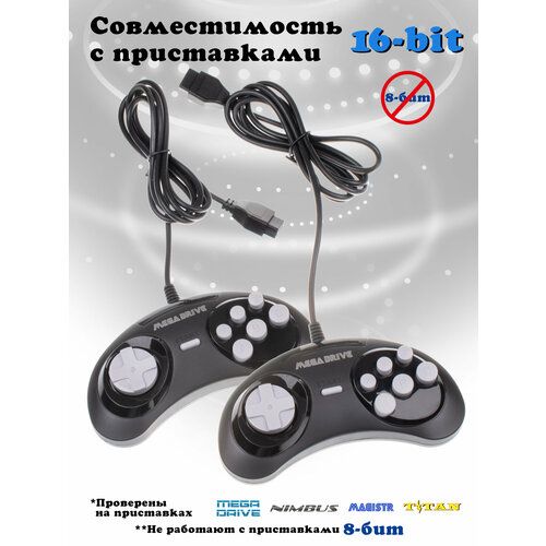 Найти - Джойстик для игровых приставок Mega Drive 16-bit черный Комплект 2 шт / Узкий разъём 9 pin