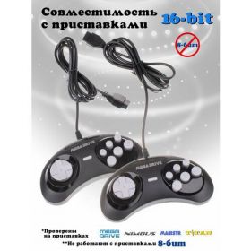 Джойстики совместимы со всеми моделями игровых приставок Sega 16 bit и аналогичными. Форма джойстиков классическая, управление шестикнопочное, подходит для игроков разных возрастов.