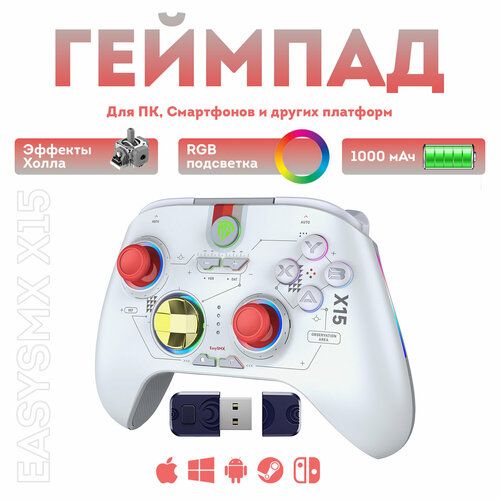 Найти - Беспроводной геймпад EasySMX X15 с RGB подсветкой / для ПК, Steam Deck, Смартфонов iOS + Android / датчики Холла на триггерах/стиках / цвет звезда (VG-C448)