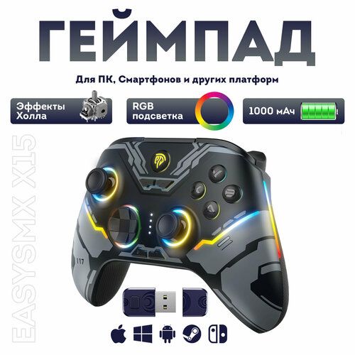 Найти - Беспроводной геймпад EasySMX X15 с RGB подсветкой / для ПК, Steam Deck, Смартфонов iOS + Android / датчики Холла на триггерах/стиках / цвет меха (VG-C449)