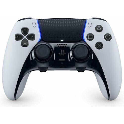 Беспроводной геймпад DualSense Edge выполнен в классическом черном и белом цветах, что делает его стильным и современным аксессуаром для вашей игровой консоли.