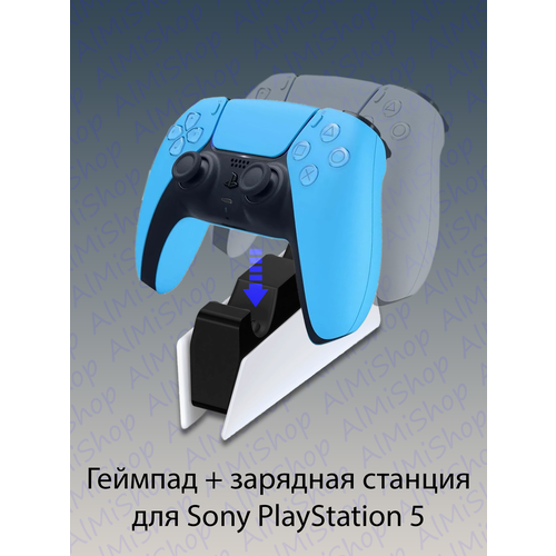 Найти - Беспроводной геймпад Sony DualSense для PS5, голубой (Starlight Blue) + оригинальная зарядная станция
