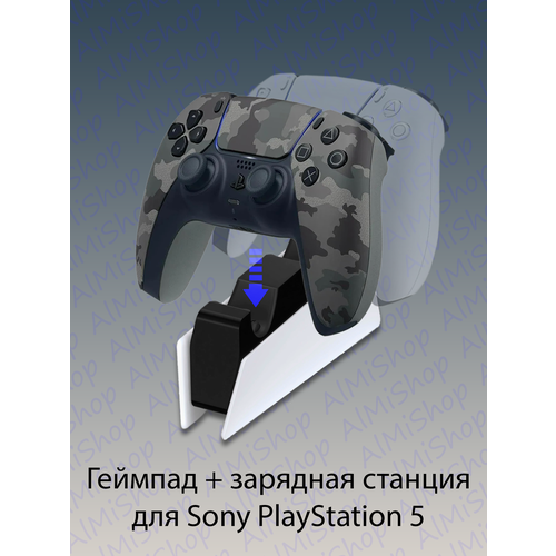 Найти - Беспроводной геймпад Sony DualSense для PS5, камуфляжный (Gray Camouflage) + оригинальная зарядная станция