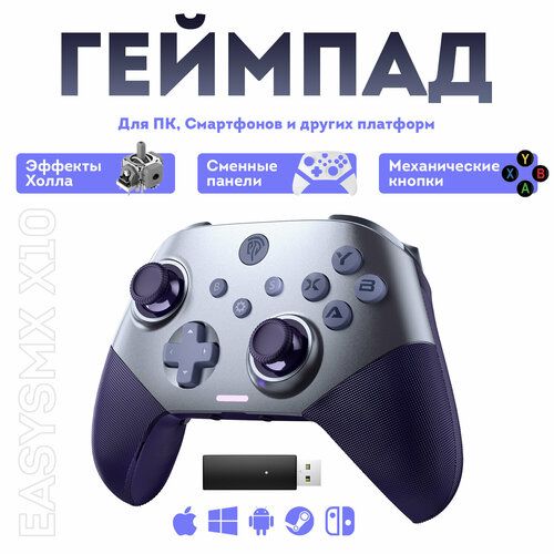 Найти - Беспроводной геймпад EasySMX X10 с механическими кнопками / для ПК, Steam Deck, Смартфонов iOS + Android / датчики Холла на триггерах/стиках / цвет фиолетовый (VG-C503)