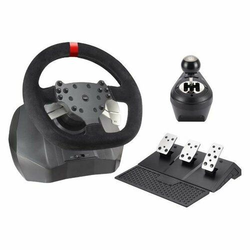 Универсальный игровой руль Artplays V-1200 Pro для практических всех существующих игровых систем: PC (X-Input, Direct-Input), . Металлическая основа рулевого колеса, придающая ощущение надежности, мягко уравновешивается качественным кожаным покрытием, передающего тепло рукам игрока. Оснащается педальным блоком с тремя педалями и коробкой передач, которые позволят имитировать езду на механической коробке передач. В комплект входя две струбцины для надежного крепления на горизонтальных поверхностях. Легкое подключение plug-n-play ко всем игровым системам. Для подключения требуется оригинальный геймпад. Металлический каркас основы рулевого колеса. Четыре металлических аналоговых подрулевых лепестка. Механический переключатель поворота руля 900 / 270 градусов.