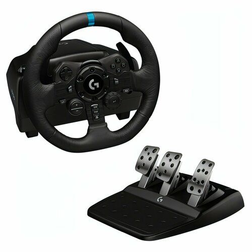 Руль Logitech G923 Trueforce с углом поворота 900° оснащен LED-индикатором оборотов двигателя, геймпадом с крестовиной и двумя подрулевыми переключателями, что обеспечивает удобство игрового процесса. Реалистичность управления достигается звуковым сопровождением в виде вибрации и двумя режимами — ручным и автоматическим. Высококачественная кожаная оплетка гарантирует комфортную эксплуатацию.