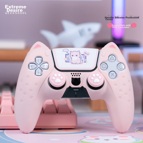 Найти - GeekShare PS5 Controller Protective Case, Pink Cat Ear Game-Specific Silicone Grip Cover, Cat Paw Joystick Cap Set, Accessories
