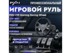 PXN Руль игровой с педалями V99 PS5, КПП 6+R, 900 градусов, черный 4369023388