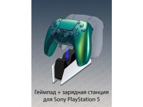 Беспроводной геймпад Sony DualSense для PS5, насыщенный зеленый (Chrome Teal) + оригинальная зарядная станция 4430086939