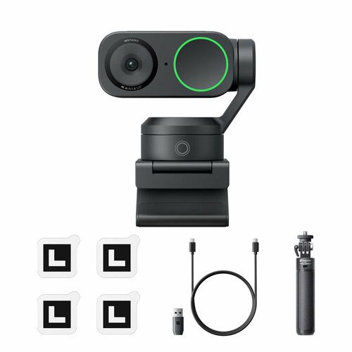 Ставий пакет включает в себя 1x Insta360 Link 2, 1x магнитный монтаж, 4x маркеры распознавания, 1x кабель USB-C, 1x адаптер USB-C на USB-A и 1x Mini 2-в-1 Ставий.