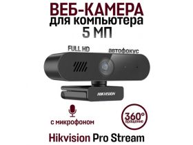 Веб-камера для компьютеров Hikvision 1920х1080 Pro Stream 5MP, USB-Type-A, черный 103817142401