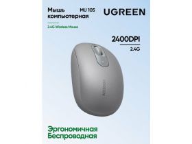 Беспроводная компьютерная мышь UGREEN MU105 (90669) 2.4G Wireless Mouse. Цвет: лунный серый 1910749214