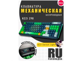 Механическая клавиатура Kzzi Z98, трехрежимная: проводная + 2.4G + BT, дисплей, Русская раскладка. Зеленая 4484948048