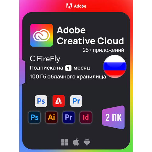 Подписка ADOBE CREATIVE CLOUD на 1 месяц 100гб: полный набор инструментов для творчества.